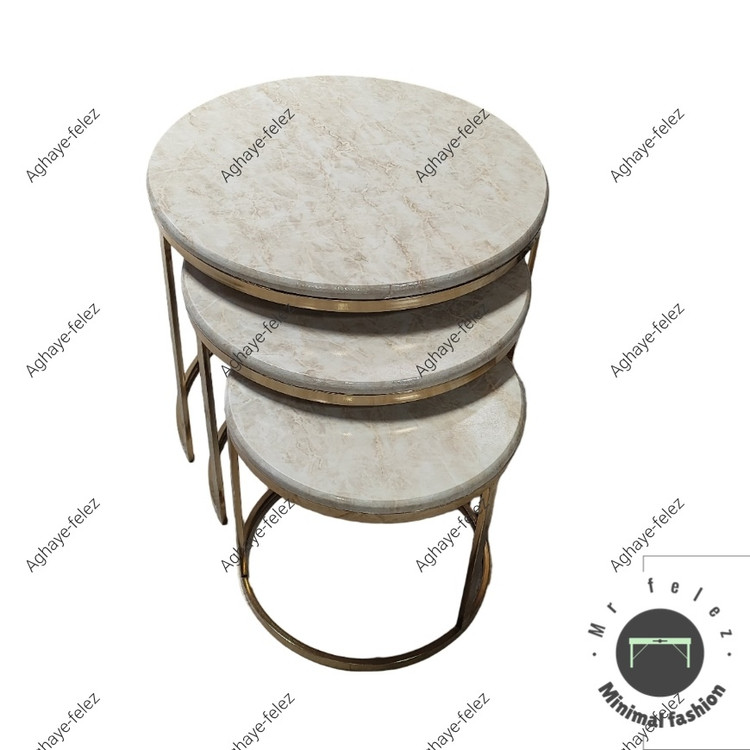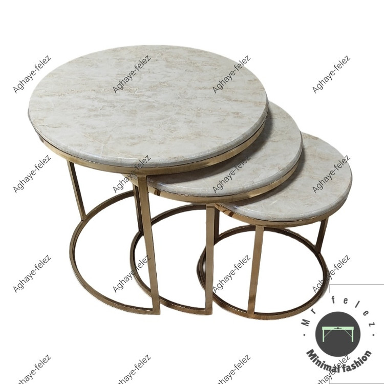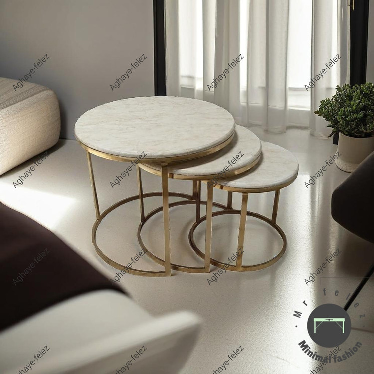 میز پذیرایی مدل ارکیده شامل سه عدد میز که به راحتی در داخل یکدیگر قرار میگیرند و فضای کمی اشغال میکنند.
