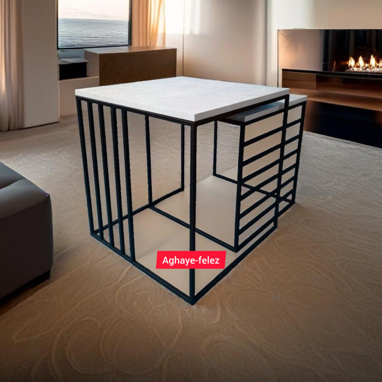 میز جلومبلی مینیمال مجموعه دو عددی شامل دو عدد میز که در داخل یکدیگر قرار میگیرند و فضای کمی اشغال میکنند. ابعاد میز کوچکتر ۴۰ در ۴۰ و ابعاد میز بزرگتر ۴۴ در ۴۴ و ارتفاع ۴۷ میباشد. جنس صفحه ملامینه طرح بتن میباشد.