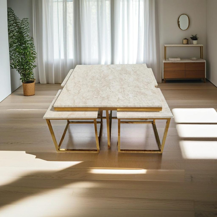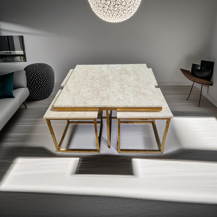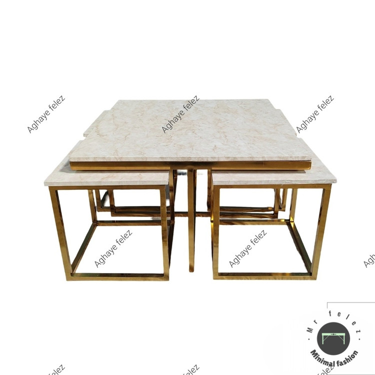مجموعه پنج عددی میز جلومبلی که مناسب پذیرایی میباشد. این مجموعه شامل یک میز بزرگ مربع به طول ۸۰ در ۸۰ سانت و چهار عدد عسلی به ابعاد ۴۰ در ۴۰ سانت میباشد.
